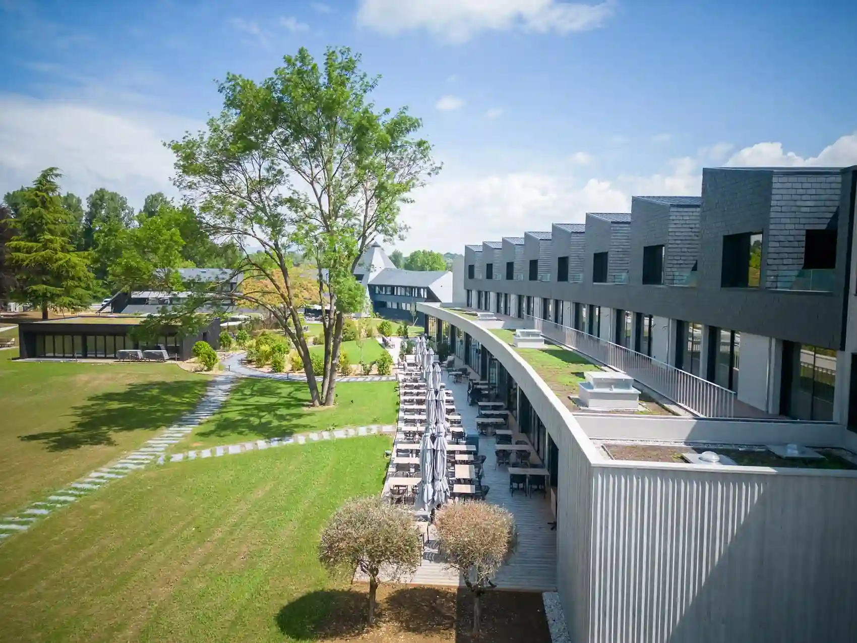 L’établissement propose également une grande salle de réception (jusqu’à 110 couverts) et une terrasse panoramique, ce qui permet de combiner session de travail et repas professionnels ou pauses networking dans un cadre calme et inspiran